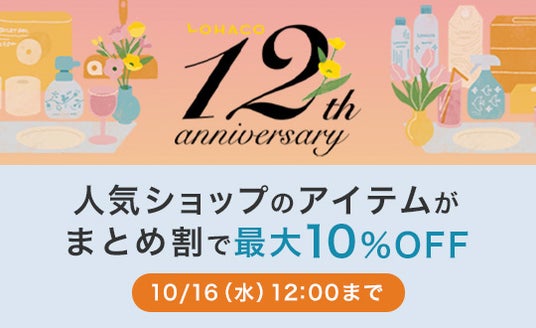 アスクル株式会社(本社:東京都江東区、代表取締役社長:吉岡晃)が運営する一般消費者向け(BtoC)インターネット通販サービス「LOHACO」(ロハコ、以下「LOHACO」)は、10月15日でサービス開始から12年を迎えることを記念し、本日9月13日(金)12 時から10月16日(水)12時まで「LOHACO12周年祭」を開催します。