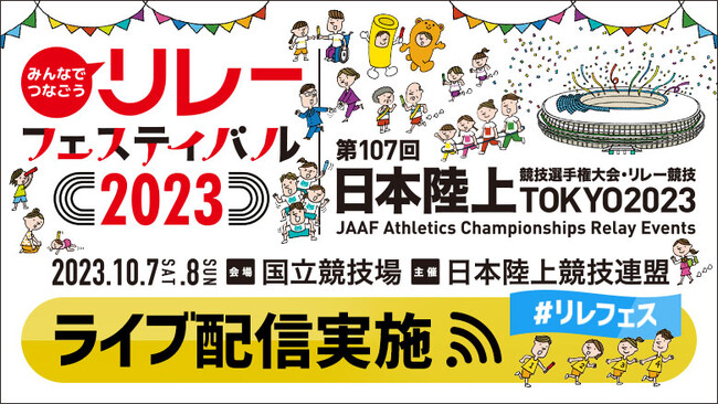 2023年10月7日(土)~8日(日)、昨年に続き、誰でも参加できるリレーイベント「みんなでつなごうリレーフェスティバル2023(https://www.jaaf.or.jp/relayfes/)」を開催いたします。