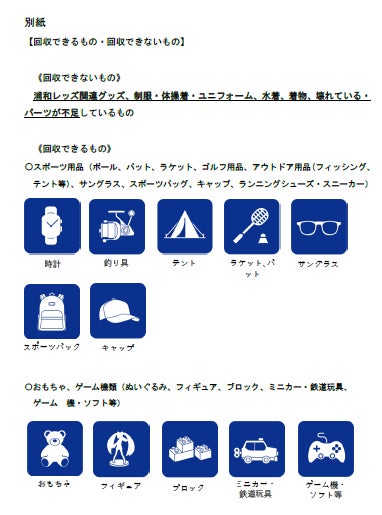まだ使えるけど不要になった「おもちゃ」「衣類」「スポーツ用品」を回収します。持ってきてく