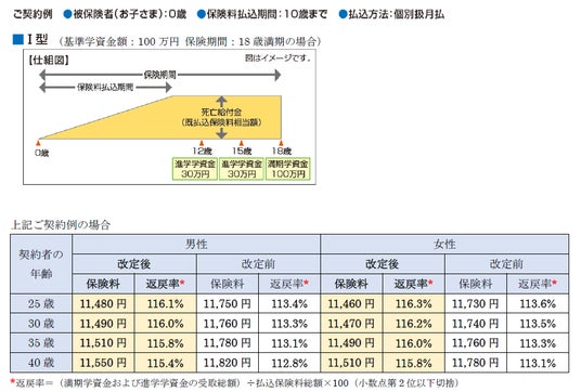 ソニー生命保険株式会社(代表取締役社長:高橋 薫)は、契約日が2026年4月2日以降となるご契約より、市場金利の状況等をふまえ、学資保険(無配当)の保険料率の改定を実施します。本改定に伴い、従来よりも割安な保険料でのご契約が可能となります。