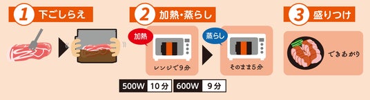 レンジ加熱用パウチに生の食材を入れて調理するメニュー用調味料は23年度の前年比で149%と伸長しています(KSP-POS 全店千人金額(全国)8-2月)。これは生活者からレンジ調理が受け入れられており、様々な利用シーンがあるためと考えます。「時短はしたいが手作りもあきらめたくない」というニーズに対し、パウチでそのまま調理することで洗い物が出ず、後片付けもラクなレンジ調理を提案いたします。