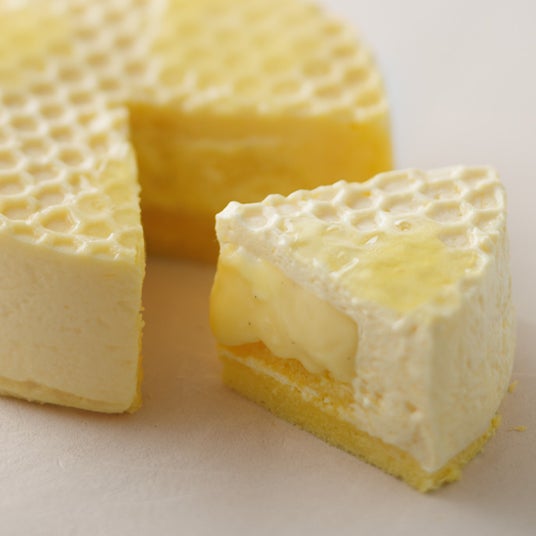ハニーレモンバターケーキ北海道産発酵バターを使用したケーキの中に、レンゲはちみつ入りカスタードクリーム。表面のハニーレモンソースで味の変化を楽しめる、とろけるバターケーキです。