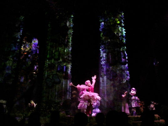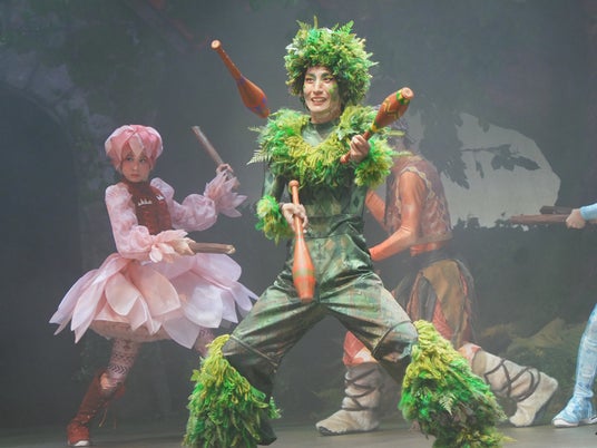 妖精の森にいろいろな世界の妖精たちが集まる特別な日。マイメロディとクロミも招待されパーティが始まります。大地の妖精の演奏にあわせ、光・花・水・木の妖精たちが続々と登場する華やかなオープニングでショーがスタートしました。