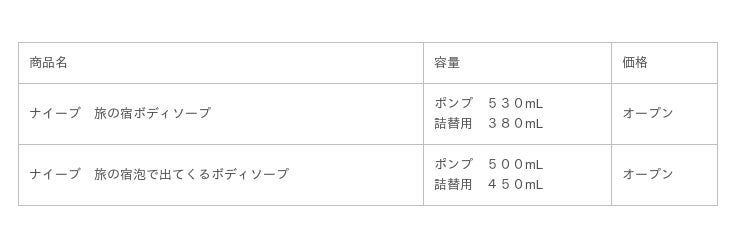 「ナイーブ」ボディソープと薬用入浴剤「旅の宿」がコラボレーションした数量限定商品