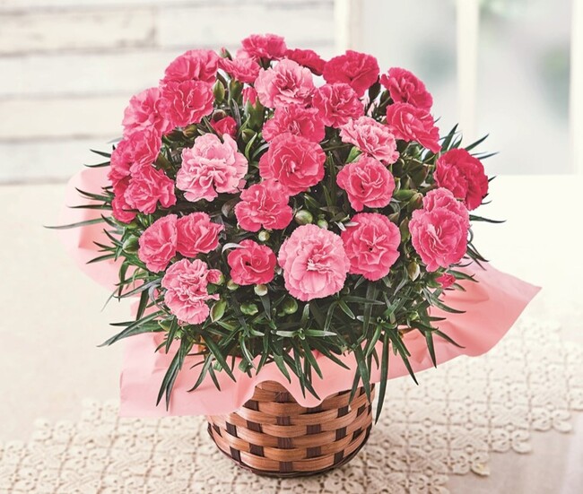 ■特長:色変わり品種のため、花色の変化が楽しめます。濃いピンクから薄いピンクにうつりゆく花色がかわいらしく、一輪一輪にボリューム感があるところがポイント。約半年間、一鉢ひと鉢の様子に合わせて水やり・肥料やりを行った愛情たっぷりのカーネーションです。さらに、プレゼントには母の日カードもついてきます。