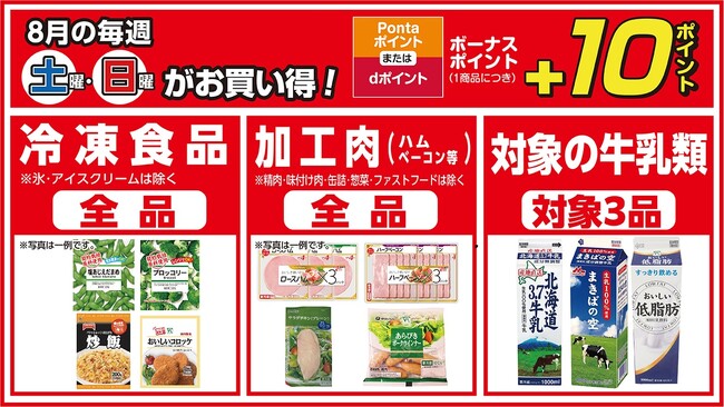 冷凍食品、ハムなど加工肉、対象の牛乳類の購入でボーナスポイントプレゼント