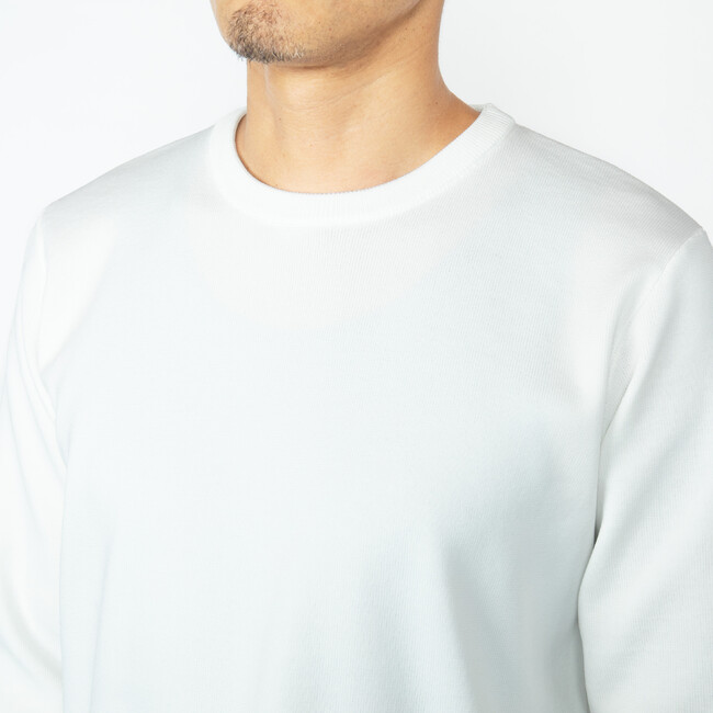 表面に抗ピリング加工を施し、毛羽立ち防止。こだわりの縫製と素材で、着ているうちに起こるニット特有のヨレや型崩れを軽減。