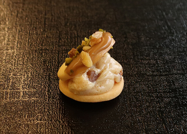 柿のキャラメリゼとバタークリームをクッキー生地でサンドしました