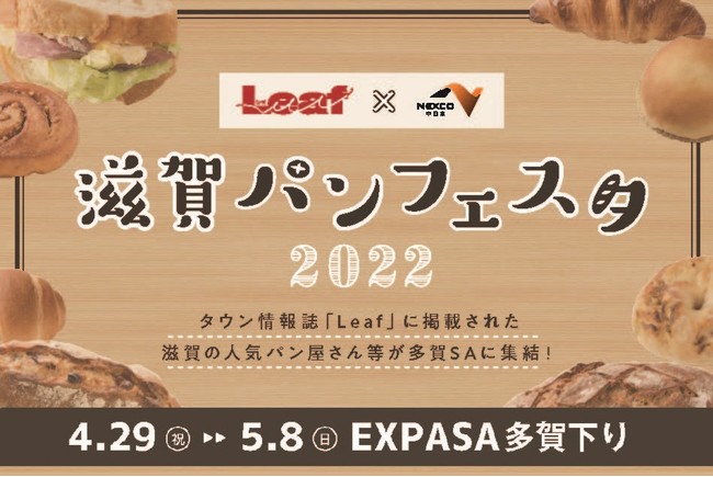滋賀県の美味しいパンを、サービスエリアをご利用いただくお客さまにお届けするため、京都・滋賀を旅する人々に向けて、地元の良いモノの発掘・発信をする雑誌『Leaf(リーフ)』とタイアップし、当雑誌に掲載実績のある人気パン屋が日替わりで出店します。