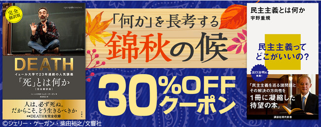 「auブックパス」では、『頭のよさとは何か』『物価とは何か』『「死」とは何か』など、「何か」を考える作品を特集いたします。期間限定で配布される、対象作品に使える30%OFFクーポンを活用して、秋の夜長を満たしてください。