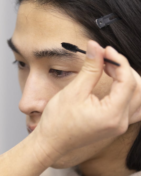 ツヤを抑えた自然な毛流れの眉が、ひそやかに主張する目もとに。