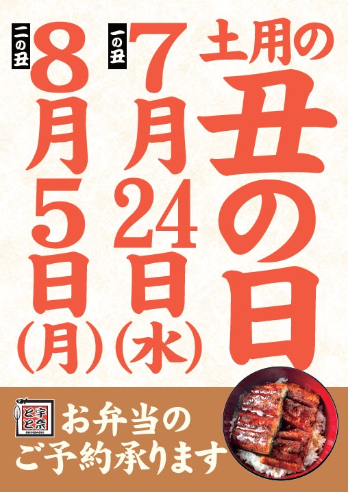 ※丑の日当日は、店内が混み合うことを避けるため入場規制をさせていただく場合があります。また、店頭でお弁当のお持ち帰りを承った際に、お待たせしてしまう可能性があるため、事前にご予約をお願いいたします。