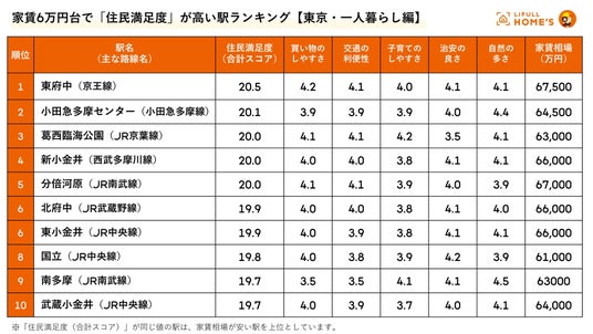 家賃6万円台で住民満足度が高い駅、1位は「東府中駅」!生活利便性の好バランスが評価され、府中市・小金井市の複数駅が上位に