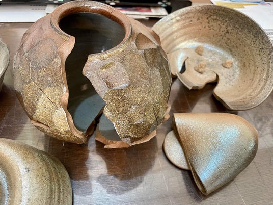 試行錯誤のあと。長年焼き物をしてきた伝統工芸士にとっても、難しい土だったことがわかる