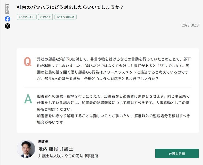 株式会社LegalOn Technologies(本社:東京都江東区 代表取締役 執行役員・CEO:角田望)は、中小企業の社長が抱える様々な悩みを解決するための新メディア「ちょこっと弁護士Q&A(以下、ちょこ弁)」を立ち上げました。「ちょこ弁」は、中小企業を中心とした多くの社長が抱えるお悩み解決をサポートすることで、経営活動に集中して取り組める環境作りをサポートします。