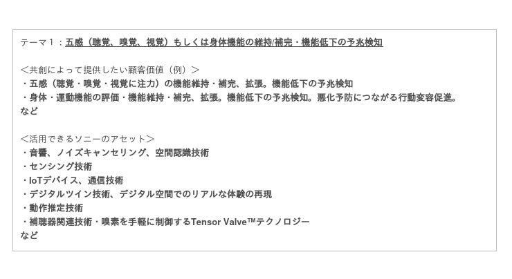 ■『OPEN INNOVATION 2023 with Sony』募集テーマ