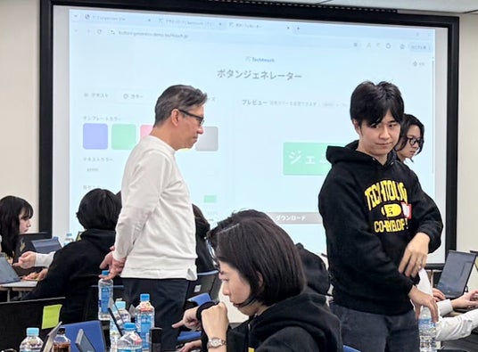 狙い通りにガイドが効果を発揮した際には「おおおお!」「すごい!」などの歓声が上がる一方、想定していない操作をされてしまい詰まってしまうケースもちらほら。「ちゃんと書いてあるんだけど見てもらえないんだ…。」「こっちにも案内をつけておけばよかった…」など、試技中に早くも改善談義を始めるチームもありました。