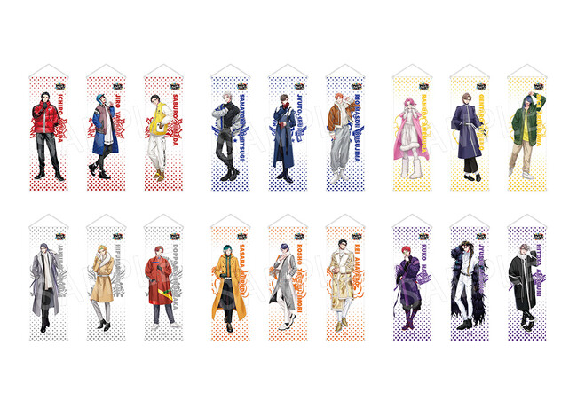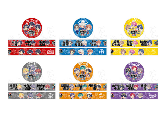ラインナップ:山田一郎、山田二郎、山田三郎、碧棺左馬刻、入間銃兎、毒島メイソン理鶯、飴村乱数、夢野幻太郎、有栖川帝統、神宮寺寂雷、伊弉冉一二三、 観音坂独歩、白膠木簓、躑躅森盧笙、天谷奴零、波羅夷空却、四十物十四、天国獄(全18種)