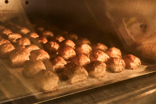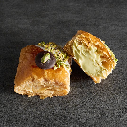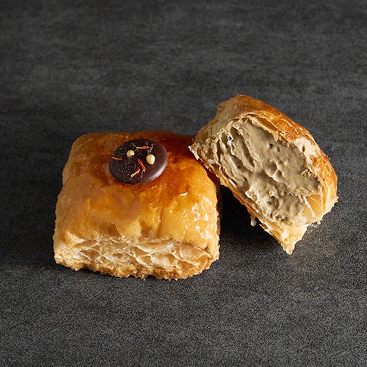 何層にも丁寧にバターを練りこんだパイ生地を、オーブンの中でふっくらと膨らませ、表面はキャラメリゼして香ばしく焼き上げました。