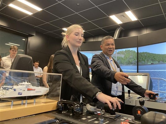 株式会社商船三井(社長:橋本 剛、本社:東京都港区、以下「当社」)は7月3日、社会貢献活動の一環として、オーストラリアの大学生(クイーンズランド工科大学から7名、ディーキン大学から6名、メルボルン大学とマッコーリー大学から各1名の計15名)を本社ビルに招待しました。当社概要および環境・安全学習、安全運航支援センター視察、操船シミュレータ体験と、いずれのセッションにおいても学生たちによる活発な質疑応答・意見交換が行われました。