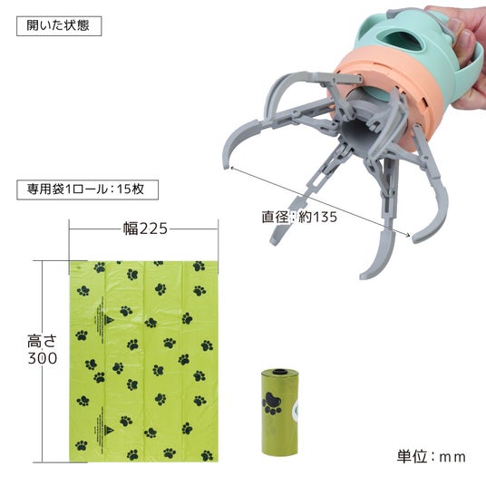 本製品は、ペットの散歩時や清掃時の「触りたくない」という悩みを解消する、新発想のフンキャッチャーです。