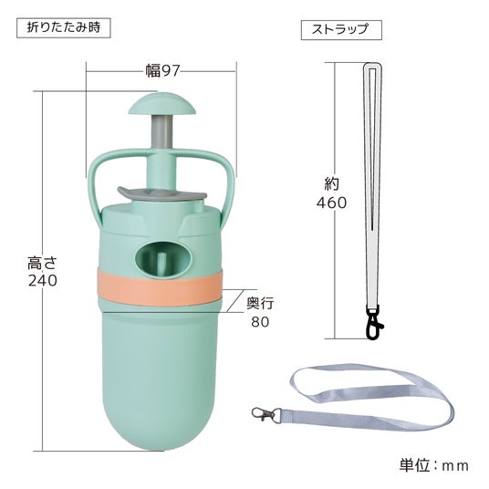 使用後はキャップを閉めることで周囲を汚さず、付属のストラップで持ち運びも快適です。
