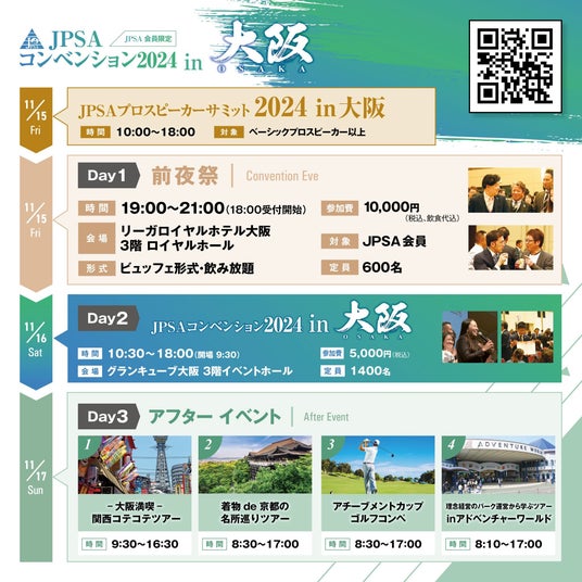 一般財団法人 日本プロスピーカー協会(以下、「JPSA」)が主催する「JPSAコンベンション2024in大阪」が11月16日(土)にグランキューブ大阪にて行われます。基調講演には、国内外での影響力を持つヒップホップアーティスト・AK-69氏、ガーナの雇用創出を目指して様々な事業を展開している美術家・長坂真護氏をゲストに迎え、アチーブメント株式会社 代表取締役会長 兼 社長の青木仁志とともに、既存の枠組みや常識にとらわれず社会を変革する志についてディスカッションいたします。