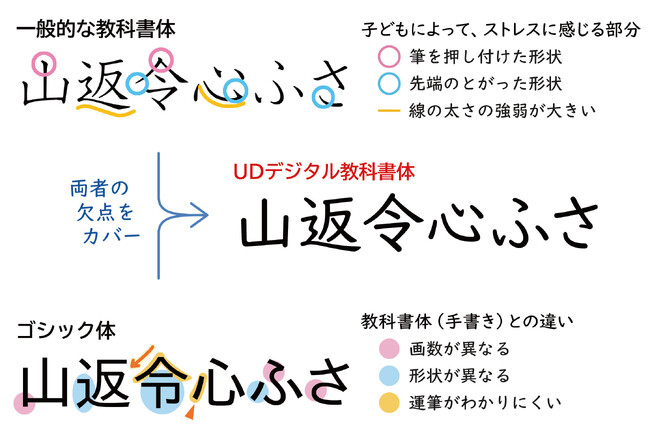 その一つである「UDデジタル教科書体」は、読み書きに困難さを抱えた子どもに配慮したデザインであり、Windows OSに標準搭載されたことから、学校を含む教育現場でも活用いただいています。開発やデザイン修正の過程では、ロービジョンやディスレクシアなどの小学生を対象とした検証、障害当事者の参画、視覚障害シミュレーション用機器の利用などで、改善を重ねました。