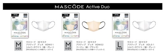 「MASCODE(マスコード)」は、ファッション性と機能性を両立させ、「マスクにドレスコードを」というコンセプトでTPOや服装、その日の気分に合わせてマスクを選び、組み合わせる新しい楽しみを提供してまいりました。そんな新たなマスクのスタイルを提案するブランドとして、「MASCODE Active Duo(アクティブ デュオ)シリーズ」はUVカット、接触瞬間冷感機能*1と合わせて、2シート構造になってより軽量化*2を実現しました。どんな時も心躍るマスクであなただけのファッションをぜひお楽しみください。