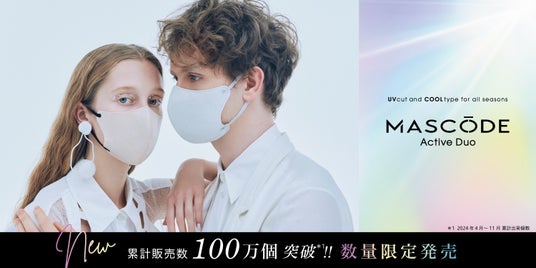 株式会社サン・スマイル(本社:東京都港区/代表取締役社長:田中徳也)は2024年4月に発売した、「MASCODE Active Duo(マスコード アクティブ デュオ)」の累計販売数が100万個*¹を突破しました。それを記念し、1枚増量の8枚入りを数量限定で発売します。
