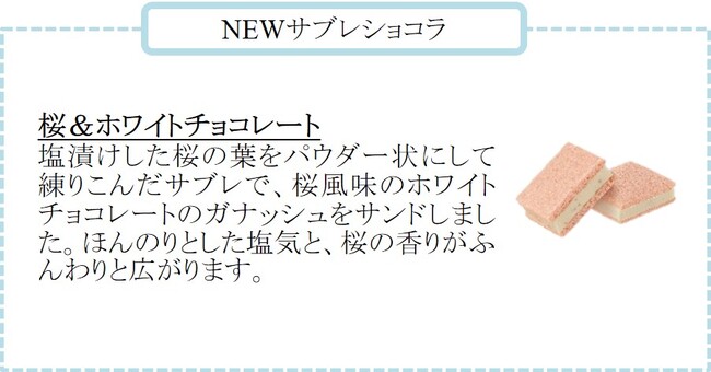サクッと焼き上げたサブレでなめらかなチョコレートガナッシュをサンドし、限定フレーバー「桜&ホワイトチョコレート」を中心に4種類のサブレを詰め合わせました。「香りの記憶」を共通テーマとして作品制作を行うイラストレーター「らすく」氏による桜のイラストを使用して、Sano Minami Design Officeがアートディレクションとデザインをした可愛らしいボックス入りです。