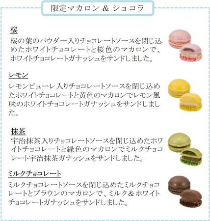 チョコレートソースを閉じ込めた贅沢なドーム型のチョコレートと目にも鮮やかなマカロンでガナッシュをサンドしました。食感の異なるチョコレート、マカロン、ガナッシュのマリアージュをお楽しみください。「ミルクチョコレート」「桜」「抹茶」「レモン」の4種類のフレーバーをカラフルに詰め合わせしました。