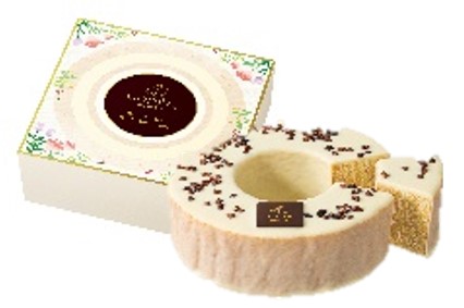 ホワイトチョコレートを練りこんでしっとりと焼き上げたバームクーヘンを、ホワイトチョココーチングで仕上げました。トッピングに使用したカカオニブが食感のアクセントになっています。