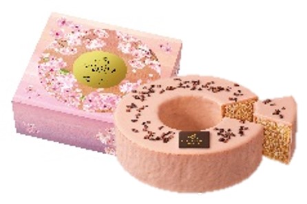 ホワイトチョコレートと桜の葉のエキスを練りこんでしっとりと焼き上げたバームクーヘンを、桜色のチョココーチングで仕上げました。ほんのりとした塩気がホワイトチョコレートの甘みを引き立てます。ショコラティエらしくトッピングにはカカオニブを使用し、食感のアクセントになっています。春のお祝いギフトにふさわしい、全面に桜の花をちりばめたパッケージは、卒業・入学などの新しい門出のお祝いギフトにぴったりです。