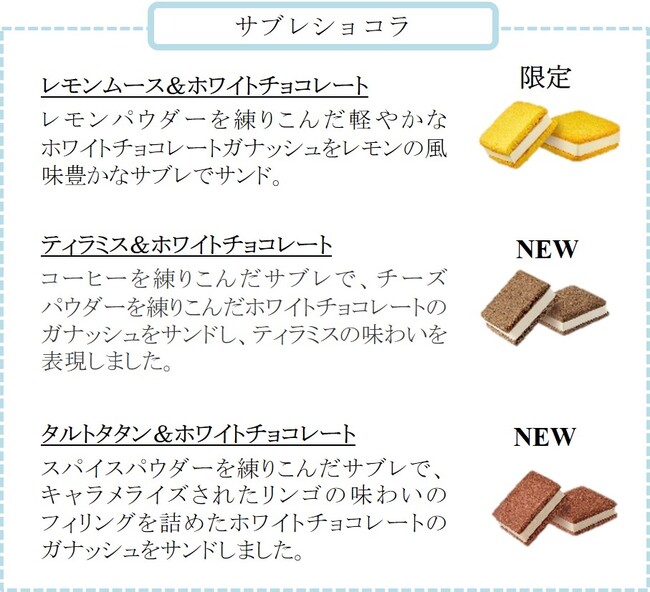 サブレショコラの誕生10周年を祝した特別なアソートメントです。デザートの味わいをイメージした3種類の限定フレーバーを詰め合わせました。華やかでカラフルなパッケージには10周年の特別なロゴ入りです。
