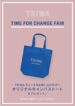 開催内容:期間中、TRIWAウォッチをご購入の方に先着でオリジナルキャンバストートバッグをプレゼント。なくなり次第終了します。