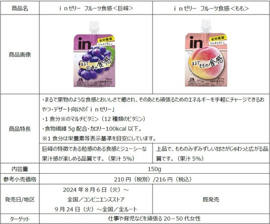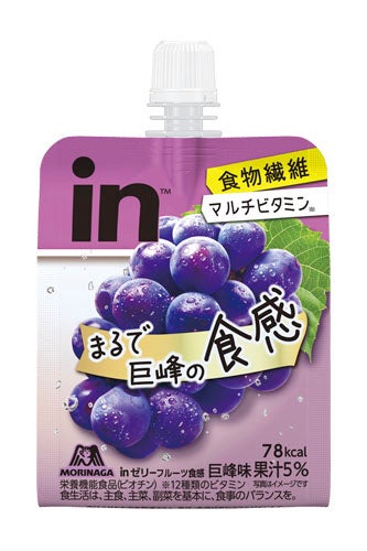 森永製菓株式会社(本社 : 東京都港区芝浦、代表取締役社長:太田 栄二郎)は、忙しい現代人の健康維持と毎日の生活を前向きにサポートする「inゼリー」ブランドから、まるで果物のような食感・美味しさで頑張るためのごきげんをチャージできる「inゼリー フルーツ食感<巨峰>」(果汁5%)を8月6日(火)よりコンビニエンスストアにて、9月24日(火)より全ルートで新発売いたします。