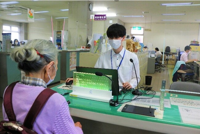 取手市の障害福祉課の窓口では、毎週火曜日に手話通訳者を設置しています。今回、手話通訳者が対応する火曜日以外でも、聴覚障がい者や難聴者が、いつでも気軽にコミュニケーションをとれる体制を構築するために本システムを導入しました。また、難聴者や聴覚障がい者の聞こえ方はさまざまで、口の動きを確認して情報を把握している方もいるため、相手の表情がよく見える透明ディスプレイを採用しました。