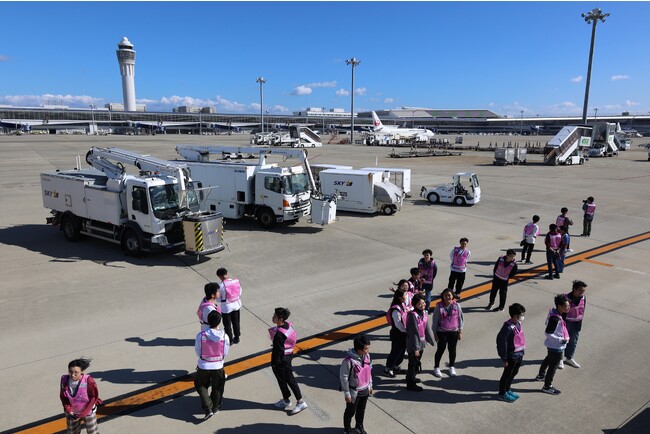 上記「職場体験・見学」にご参加いただいた学生に、18歳以上の成人を加えた計60名をセントレアの滑走路内にご案内いたしました。