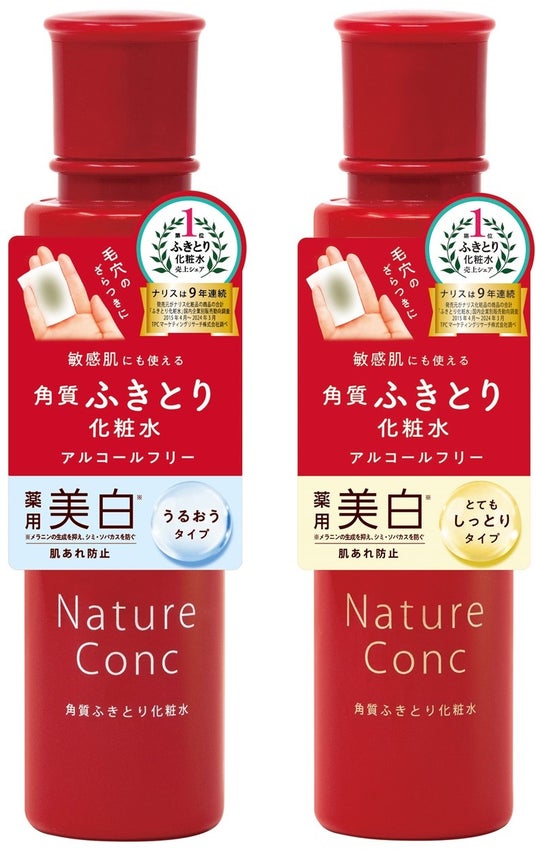 当社の調査では、一般的にふきとり化粧水は、老化角質を取り除くケアであるため、刺激が強いというイメージを持っている人が多く存在します。「ネイチャーコンク」は、90年近く続く角層研究をもとにハトムギや月見草など植物由来の保湿成分のチカラで毎朝晩気持ちよくケアできることが健やかな肌に導く秘訣です。今回新しく敏感肌の人の協力によるパッチテストを実施しクリアしています。美白※1・ニキビ予防・肌あれ防止に加えて、毛穴のざらつきケアまでできる「ネイチャーコンク」。実は朝の洗顔代わりにも使用することができ、使用者や使用シーンに広がりが生まれています。今回のリニューアルは医薬部外品をイメージしやすいパッケージに刷新。敏感肌の人も含めてより多くの人の肌悩みにこたえるブランドに育てていきたいと考えます。 ※1 メラニンの生成を抑え、シミ・そばかすを防ぐ。