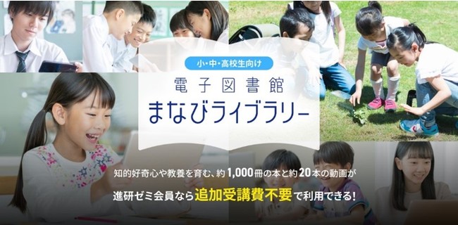 ベネッセコーポレーションが「進研ゼミ」会員に提供する、追加受講費不要の電子書籍サービス(https://benesse.jp/zemi/library/)。ネットワークがつながる環境とデバイスがあれば、いつでも、どこでも自由に読書ができます。貸出できる本は定期的に入れ替え、常時1000冊の本から自分の読みたい本を選ぶことができます。