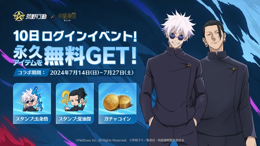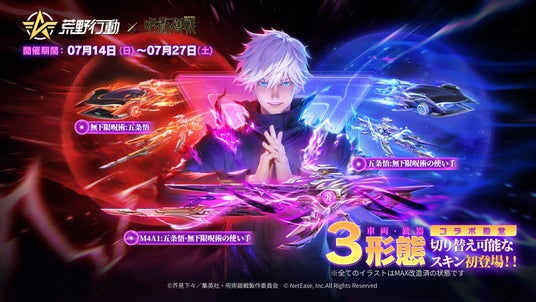 NetEase Gamesが開発・運営する大人気スマホゲーム『荒野行動』にて、2024年7月14日から7月27日の期間中、TVアニメ『呪術廻戦』とのコラボイベント第3弾を開催いたします。