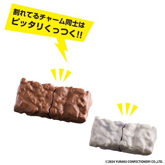 さらに、「ブラックサンダー」と「ブラックサンダー(30周年パッケージ)」、「白いブラックサンダー(個包装)」と「白いブラックサンダー(パウチ)」の割られたチョコバーは、実はそれぞれピッタリと合わせることができる形状で、開発担当のちょっとした遊び心が取り入れられています。