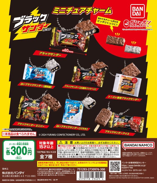 『ブラックサンダー ミニチュアチャーム』(1回300円・税10%込、全7種)を2024年12月第2週より順次発売