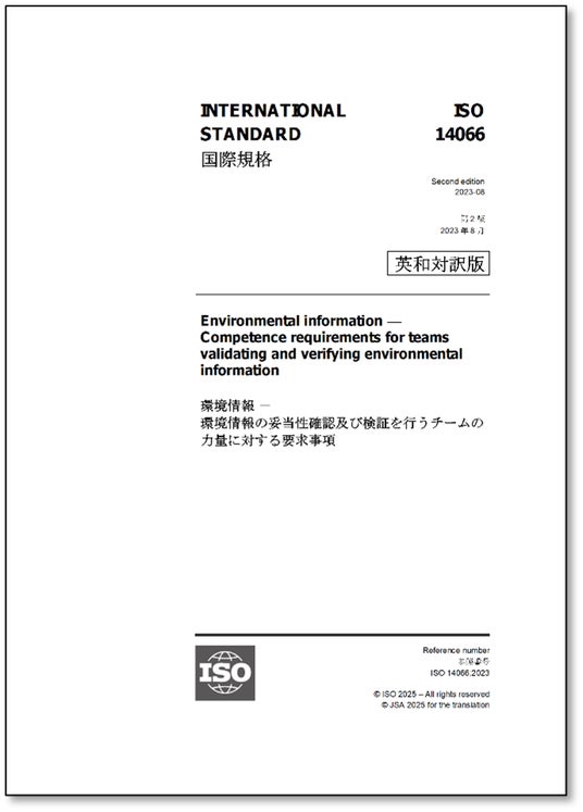 一般財団法人日本規格協会(本部:東京都港区、理事長:朝日弘)は、2025年6月16(月)にISO 14066:2023 環境情報-環境情報の妥当性確認及び検証を行うチームの力量に対する要求事項の邦訳(英・日対訳版)を発行いたしました。