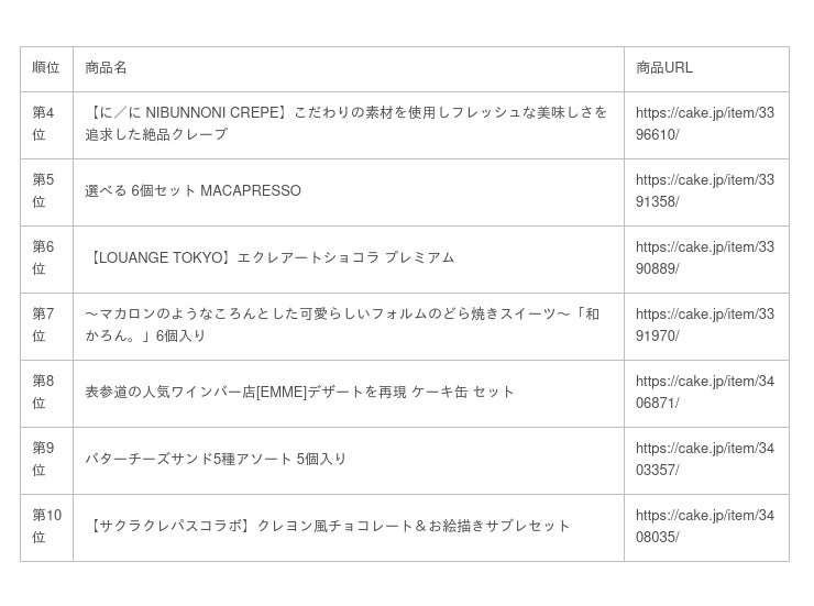 会員100万人以上を誇るCake.jpにおいて、1年間でCake.jp内で最も販売数の多かったケーキ・スイーツのランキングトップ10をご紹介します。