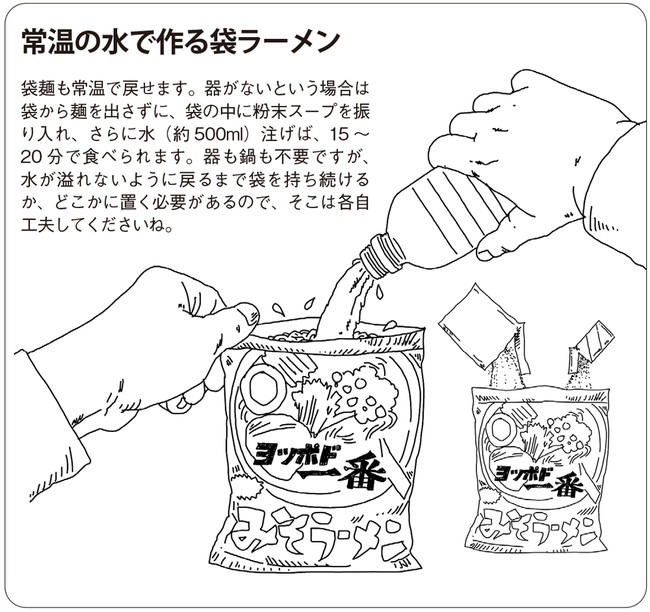 ○常温の水で作る袋ラーメン○ジップロックで作るスープパスタ