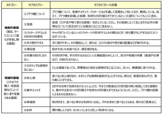 <調査結果>今回の調査によって確認された、「森永ラムネ」の価値の分類・定義