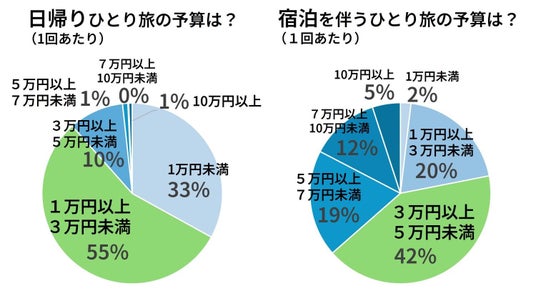 ひとり旅の予算は日帰りで1万円以上3万円未満 宿泊を伴う場合は3万円以上5万円未満