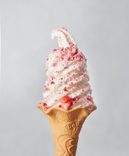 北海道産牛乳とリコッタチーズのソフトクリームにドライ苺とチーズをトッピング。